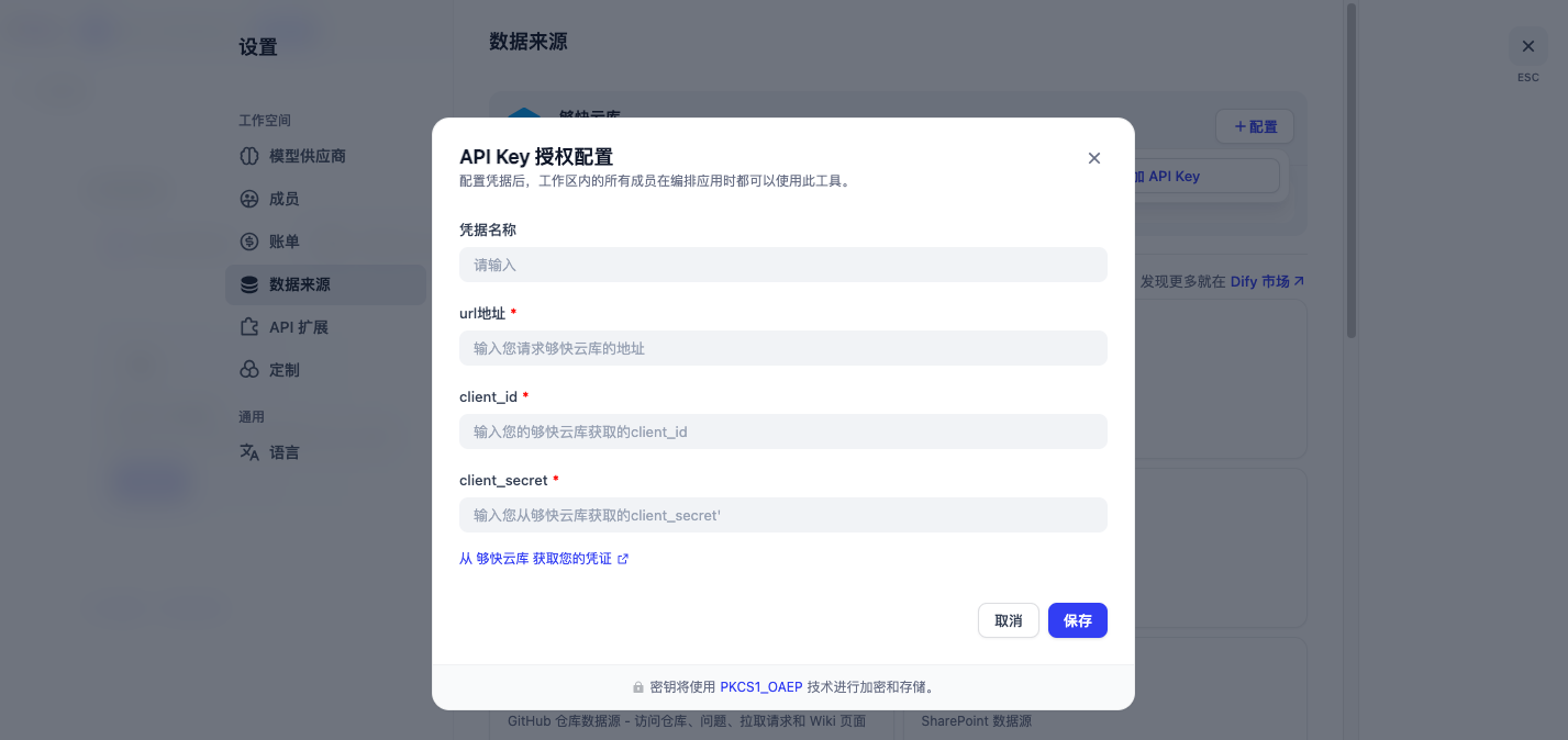 够快云库数据源插件已经上线Dify平台!现在,您可以将存储在够快云库中的海量文档和数据,变为AI应用的强大知识大脑。