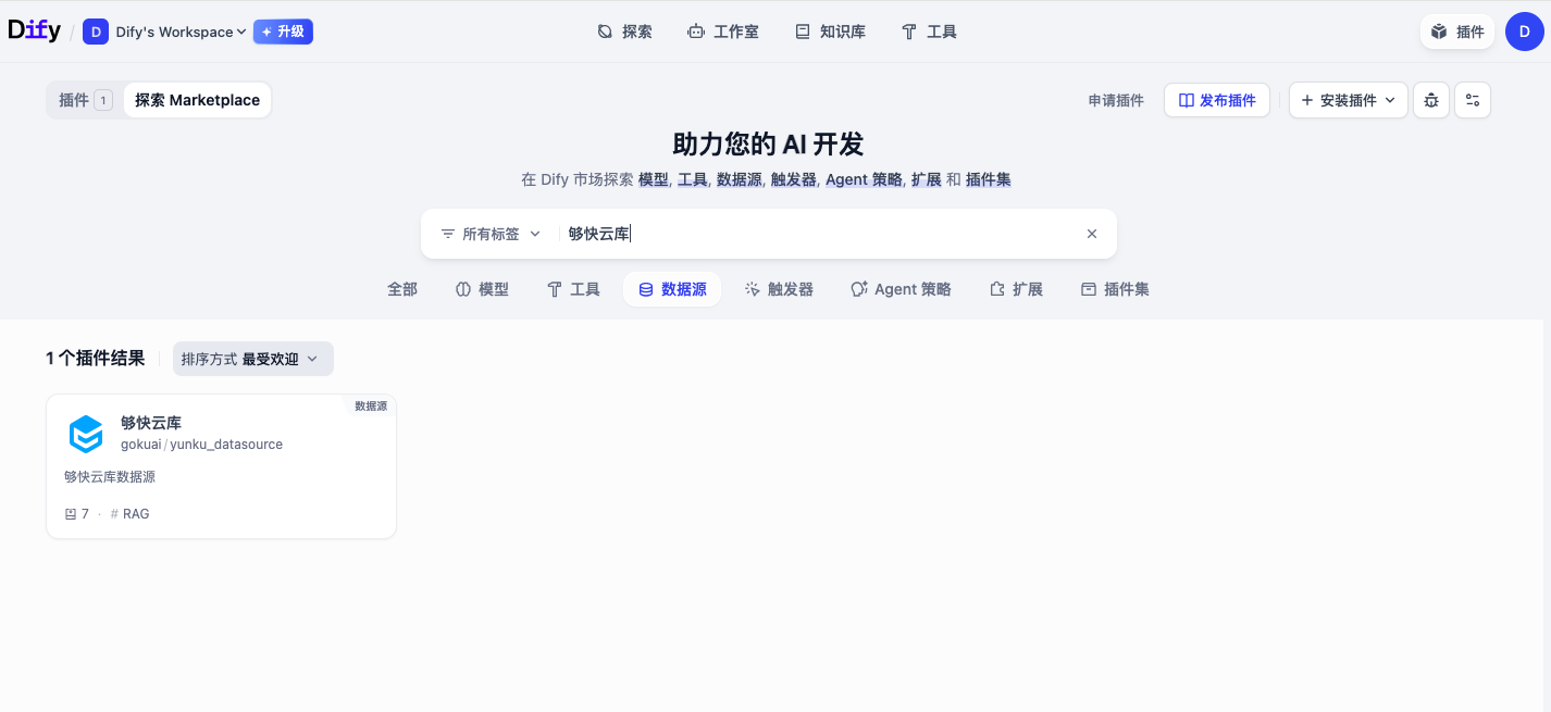 立即在Dify插件市场中搜索并安装“够快云库”插件,让您的企业数据与AI能力无缝融合,真正释放智能化的生产力。